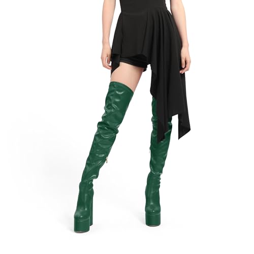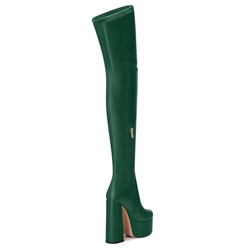 SKYSTERRY Women's Thigh High Boots Over The Knee Platform High Chunky Round Toe Heels Boots Side Zipper Sexy Comfortable Long Boots 5