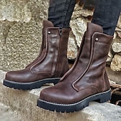 Highlights [Fabric and Construction] : Crafted from high-quality PU material, these women's mid-calf boots offer durability and a sleek, polished look. The boots feature a classic round toe design and a sturdy rubber outsole, providing excellent grip and stability for all your outdoor adventures. [Silhouette] : These boots boast a vintage motorcycle style with a mid-calf height, offering a bold, adventurous style. The lug sole and lace-up closure enhance the classic silhouette, making them both practical and stylish for everyday wear. [Design Highlights] : Featuring stylish seam detailing and metallic snap buttons, these boots add a rugged aesthetic to any outfit. The convenient side zipper ensures easy wearability, while the splicing embellishment highlights the attention to detail in their design. [Occasions] : Perfect for fall and winter walks, these boots are an ideal choice for daily wear, outdoor adventures, or completing a trendy urban outfit. They blend practicality and fashion, making them suitable for various activities. [Size Range] : Available in a range of sizes from US6-6.5 to US12, these boots ensure a comfortable fit for different foot sizes, allowing you to confidently step out in style.