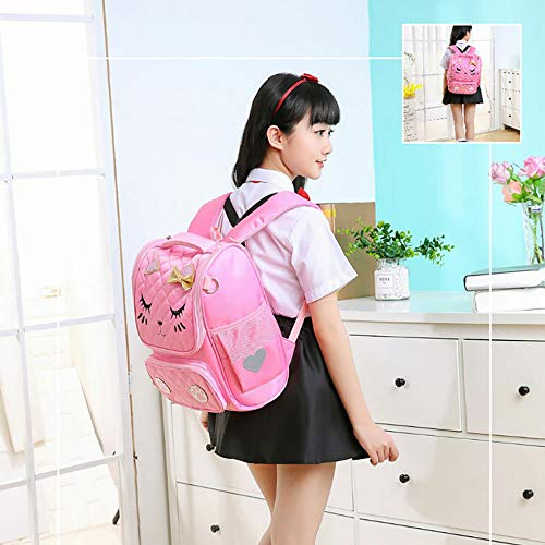 Proboths Cute Cat Face Girl's Bowknot School Backpack Kid's Bookbag Gift for Elementary Primary Student Pink 3