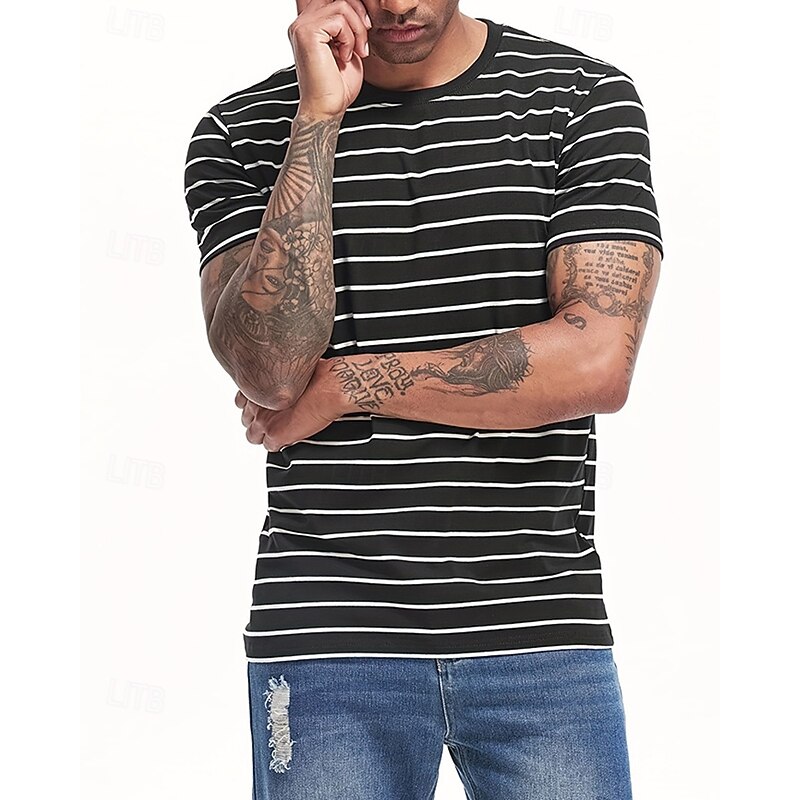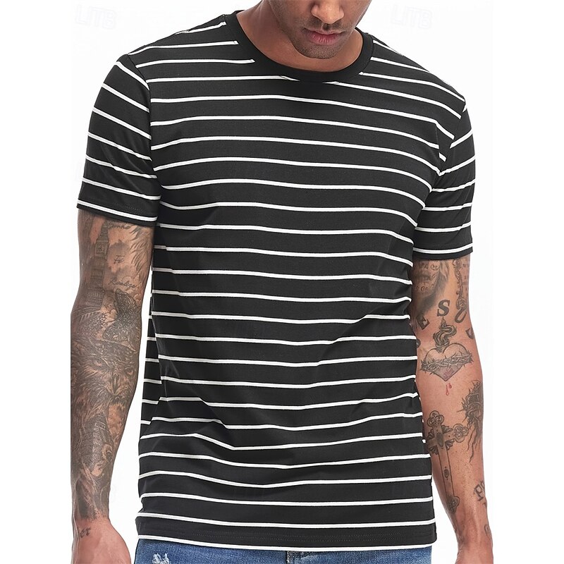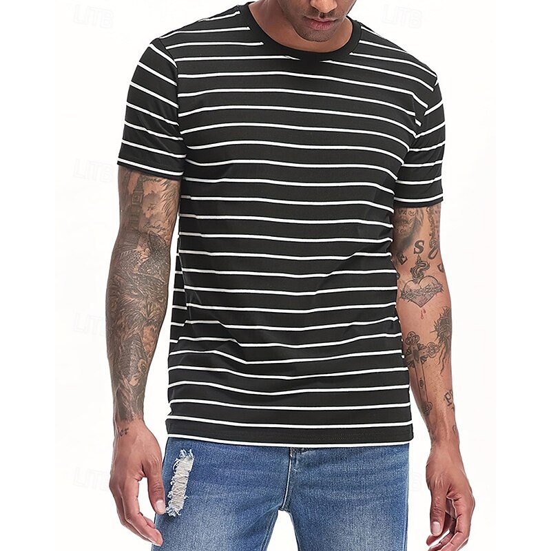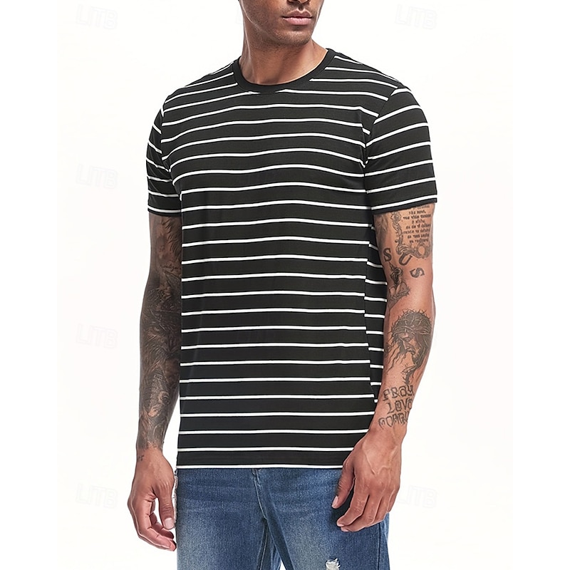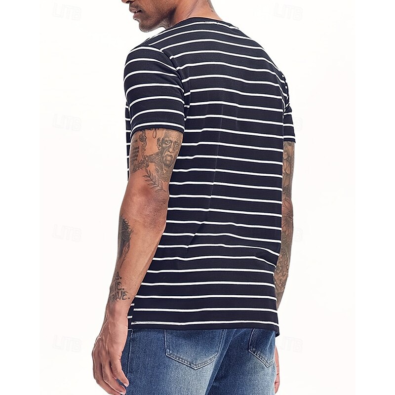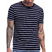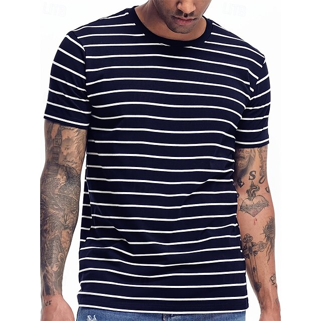More information about Men's T Shirt Tee Short Sleeve Shirt Tee Top Short Sleeve Crew Neck Summer Spring Stripes Fashion Designer Basic Classic Vacation Street Going out Black Navy Blue Top Tee for Men
