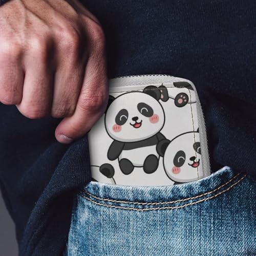 Womens Pu Leather Credit Card Holder Wallet, Compact Slim Zipper Card Organizer Cute Panda Cardholder Protector Case with 20 Slots 5