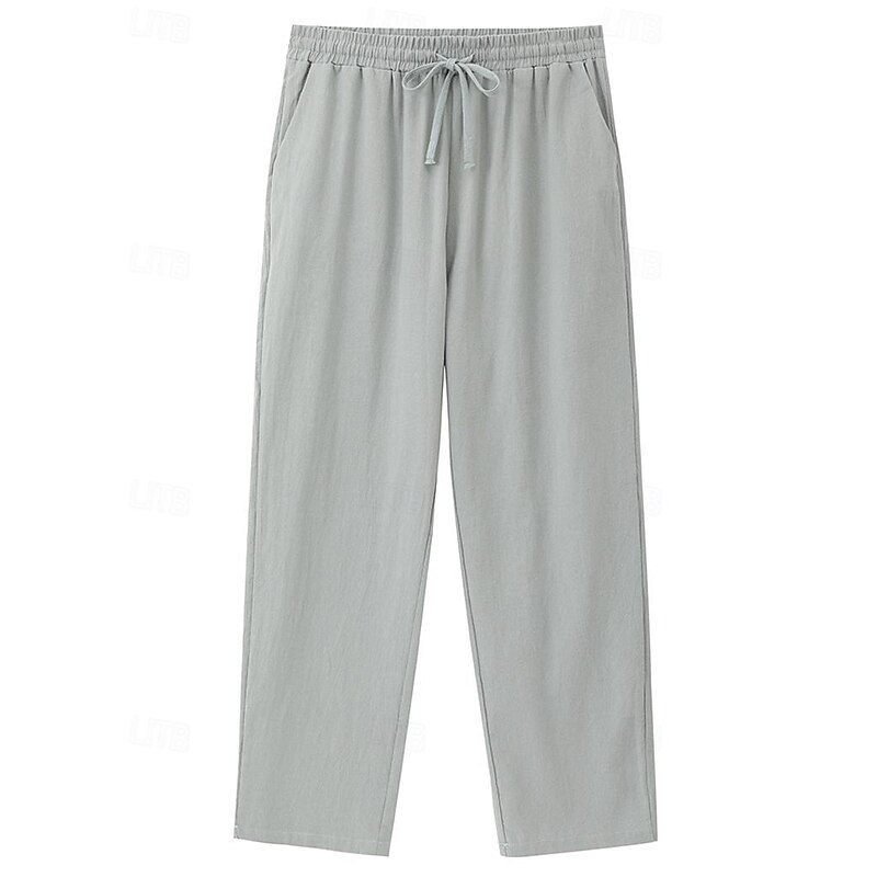 Men's Linen Pants Trousers Beach Pants Pocket Drawstring Plain Comfort Breathable Home Daily Stylish Classic Style Black White Micro-elastic 9