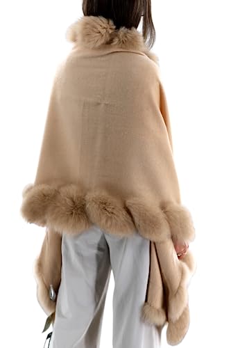 More information about La Fiorentina Fox Trimmed Wrap in Camel - Luxurious Elegance and Sophistication