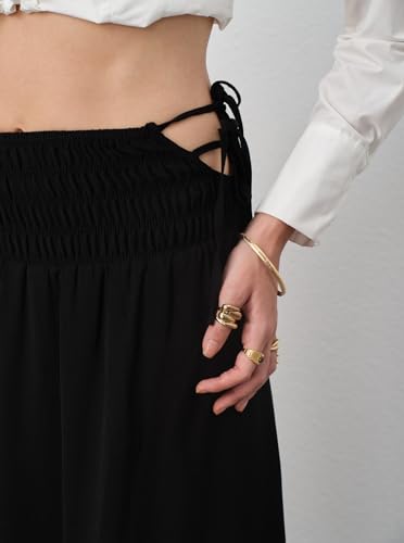 Women's Summer Side Tie Boho Maxi Skirt Shirred High Waisted Ruched Flowy Beach Long Skirts 7