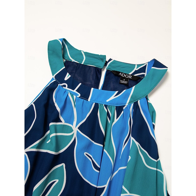Women's Chiffon Dress Maxi Dress Blue Purple Sleeveless Floral Ruffle Printing Spring & Summer Round Pattern Dress XS S M 11