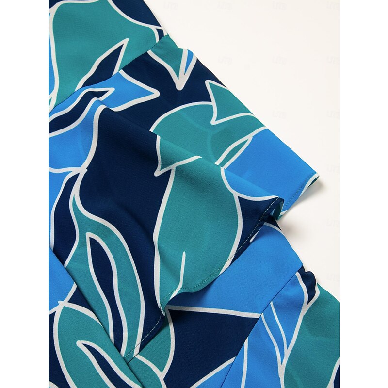 Women's Chiffon Dress Maxi Dress Blue Purple Sleeveless Floral Ruffle Printing Spring & Summer Round Pattern Dress XS S M 13