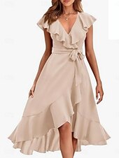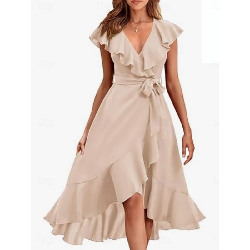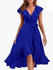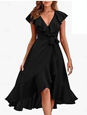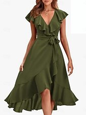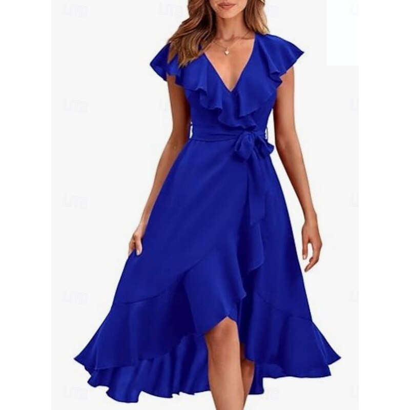 More information about Women's Midi Dress Wrap Dress A Line Dress Summer Dress Casual Daily Regular Fit Plain Short Sleeve V Neck Black Royal Blue Army Green Apricot Summer