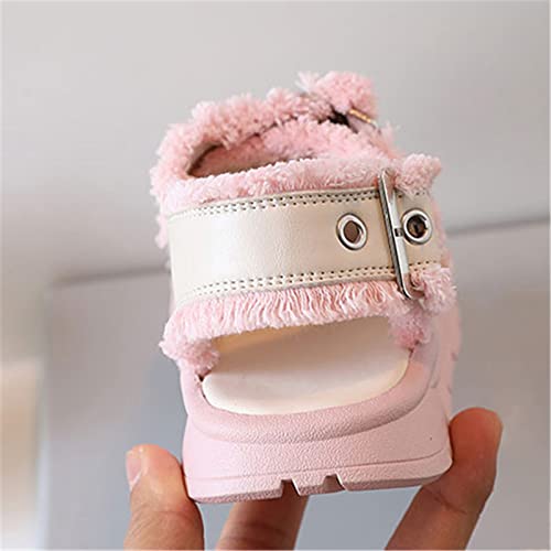 HOT ! Big Kids Girl Sandals Summer Black Hairy Edge Adjustable Ankle Width Soft Bottom With Princess Size 4 Girls Sandals