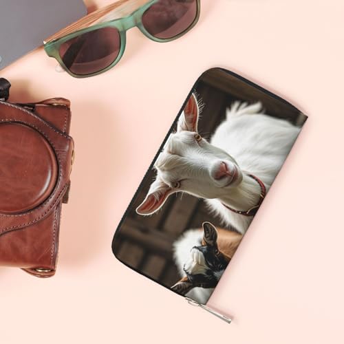 Pu Leather Wallet For Women Girl, Zip Around Credit Card Holder Cute Goat Long Wallet Clutch Purse Waterproof Travel Handbag 1