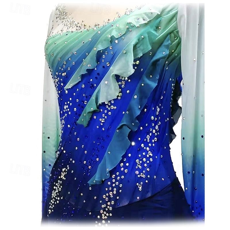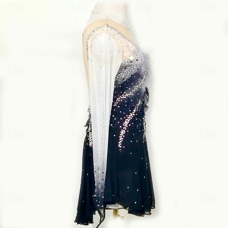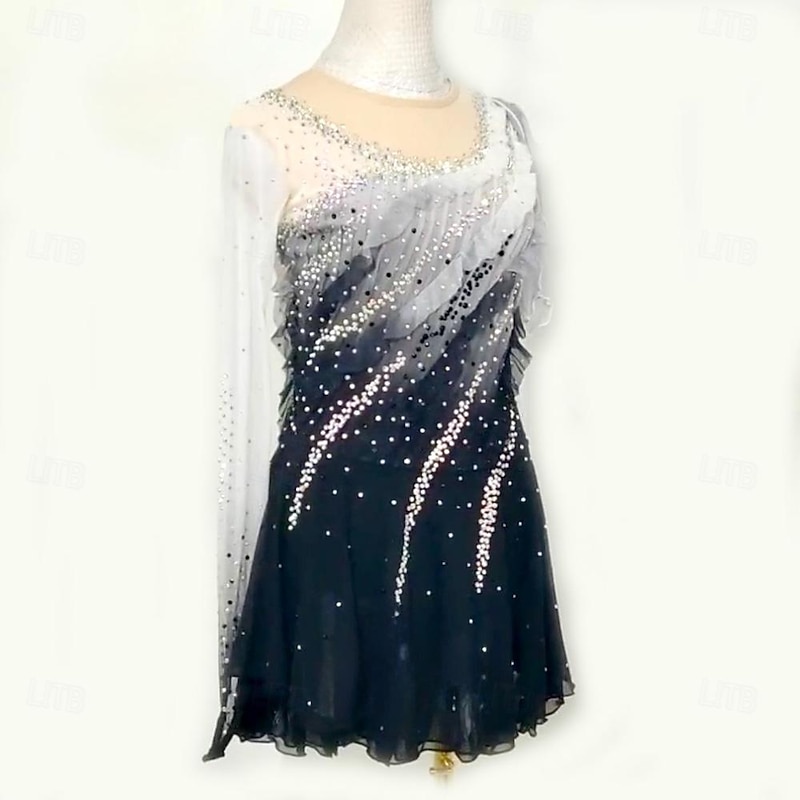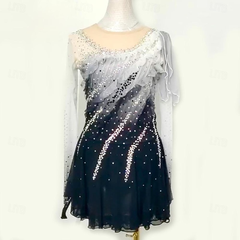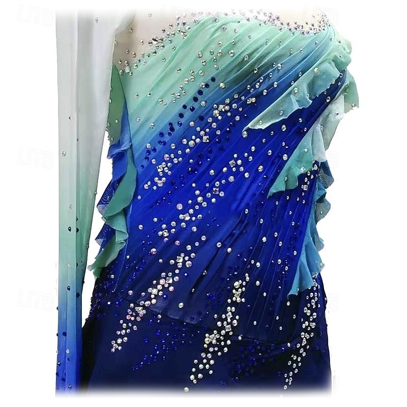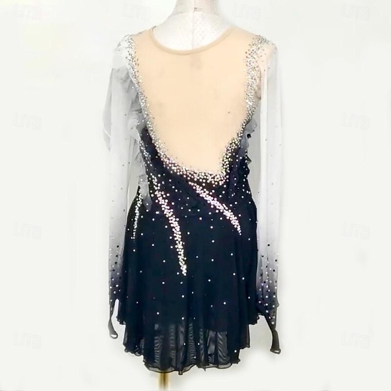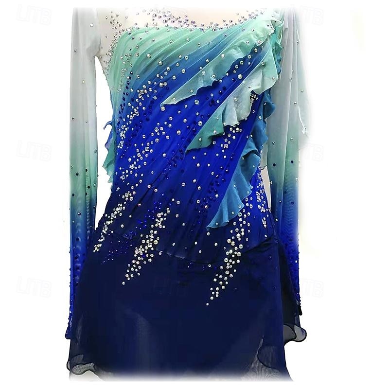 More information about Figure Skating Dress Women's Girls' Ice Skating Dress Black Blue Patchwork Thumbhole Mesh High Elasticity Training Competition Skating Wear Classic Long Sleeve Ice Skating Figure Skating