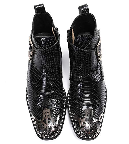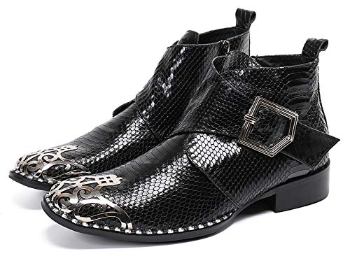 Santimon Mens Western Chelsea Boots Leather Metal Tip Buckle Zipper Dress Boots for Men 7