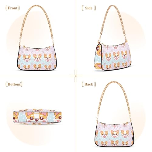 More information about Zipper Shoulder Handbag Aesthetic Cute Dog Faces Dot Tote Handbags Artistic Womens Crossbody Purse with Chain Strap