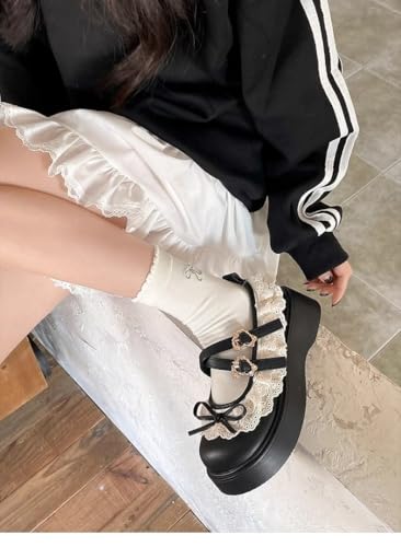 ZQW Women's Kawaii Lolita Chunky Mary Jane Shoes with Bow Cute Aesthetic Round Toe Goth Platform Dress Pumps Sweet Flats 3