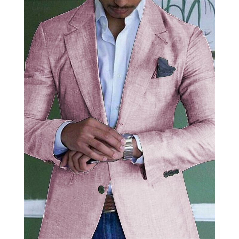 HOT ! Men's Graduation Lightweight Jacket Lightweight Coat Casual Formal Evening Party & Evening Fashion Casual Spring & Fall Polyester Plain Pocket Casual / Daily Single Breasted Blazer Light Green Pink