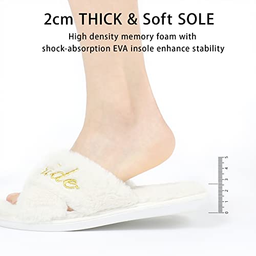DICUIRD Bride slippers Wedding Slippers I Do Slippers Bridesmaid Slippers Women slippers-Bride Slippers for Wedding Day Bride slippers for women White Slippers for Bride 6