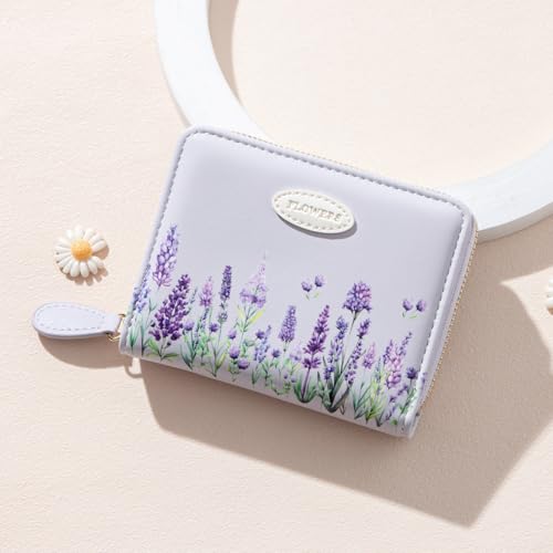 Sunwel Fashion Women Girls Wallet with Floral Prints Small Wallet with Coin Pocket, ID Window and Card Slots, Daisy, Tulip, Lavender, Lily of the Valley (Lavender) 1