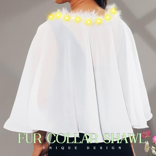 EVILD Women's Shawl Wraps Light Up Evening Dress Capelet Shrug Prom Chiffon Cape 4