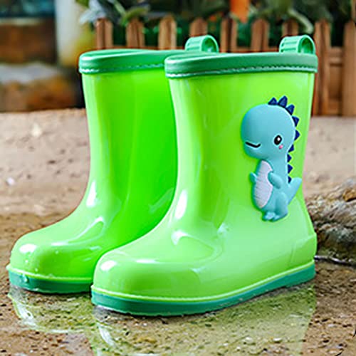 HOT ! Toddler Kids Rain Boots Rubber Shoes with Easy On Handles Lightweight in Rain Boots for Toddlers Boys (Green, 7-8 Years)