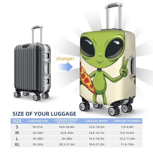 HOT ! Travel Luggage Suitcase Zipper Closure Baggage Cover Fits 19-32 inch Suitcase, Anti-Scratch Luggage Case Protective Cover, Funny Space Alien Eating Pizza Peace