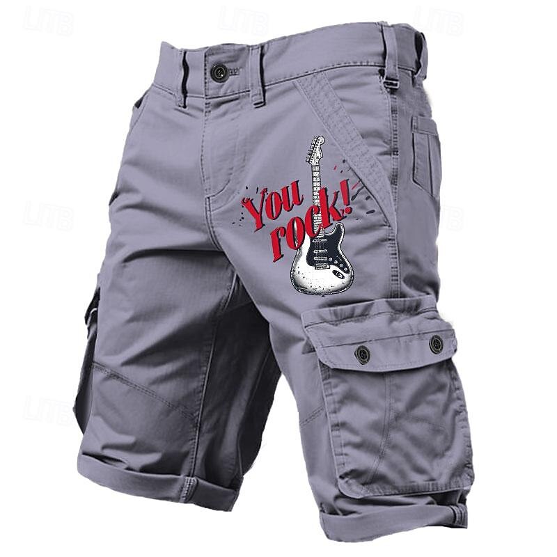 $34.99 - Men's Cargo Shorts with 'You Rock!' Guitar Graphic Print, Casual Summer Beach Streetwear 2025. Shop for cheap Men's Graphic Cargo Shorts online? Buy at lightinthebox.com on sale today!