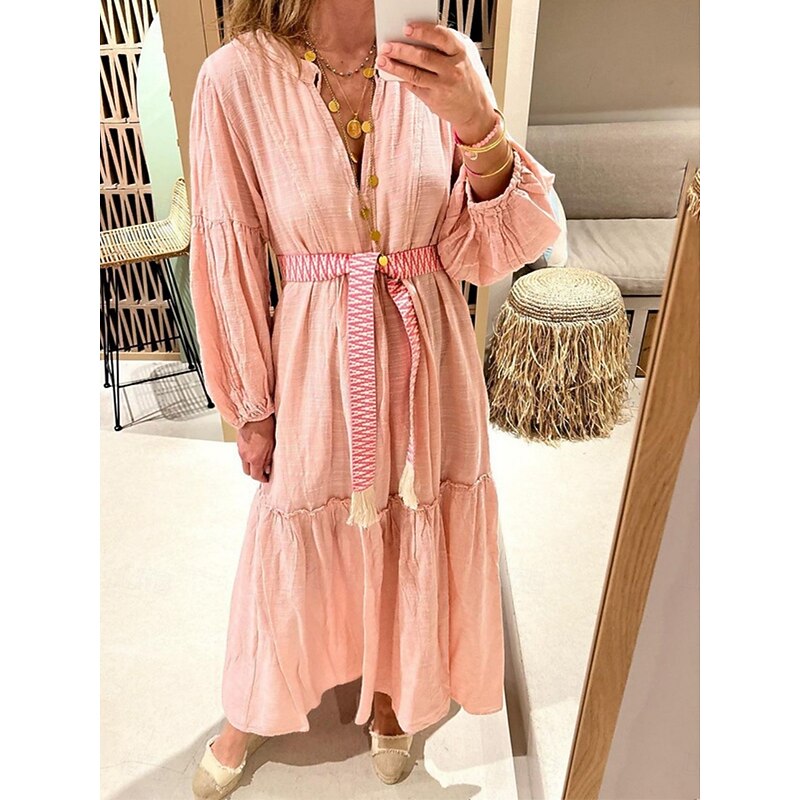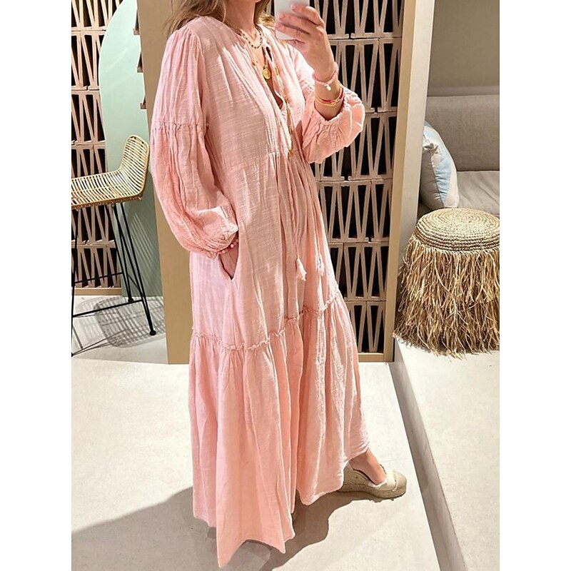 More information about Women's Maxi Dress Linen-Inspired Dresses Casual Dress Swing Dress Plain Dress Casual Sports & Outdoor Street Regular Fit Plain Long Sleeve V Neck Pink Spring Fall