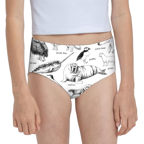 Monochrome Hand Drawn Arctic Animals Girls' Underwear Soft Cotton Little Girls Panties Comfort Briefs 7