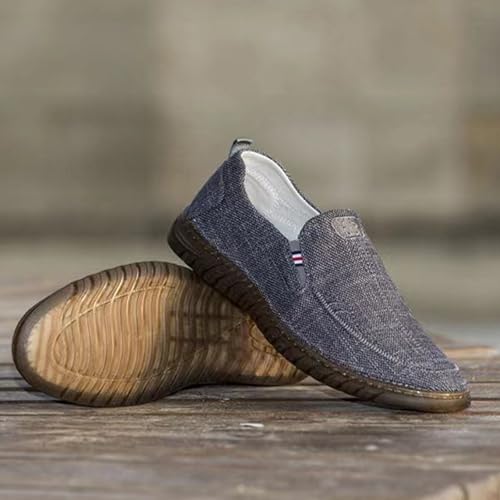 HOT ! MILDSEVEN Fashion Men's Casual Linen Shoes, Simplicity Breathable Canvas Shoes, Comfortable Retro Handmade Loafers,7,Grey