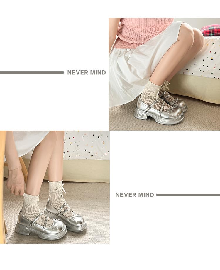 ZQW Cute Chunky Mary Janes Shoes French Style Kawaii Bow Buckle Platform Heels Y2K Lolita Cosplay Costume Casual Work Office 5