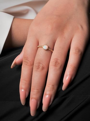 Vintage Victorian Style 14K Yellow Gold Plated 925 Sterling Silver 5mm Round Multi Colors White Fire Created Opal Solitaire Open Adujstable Ring for Women Daily Wedding October Birthstone 6