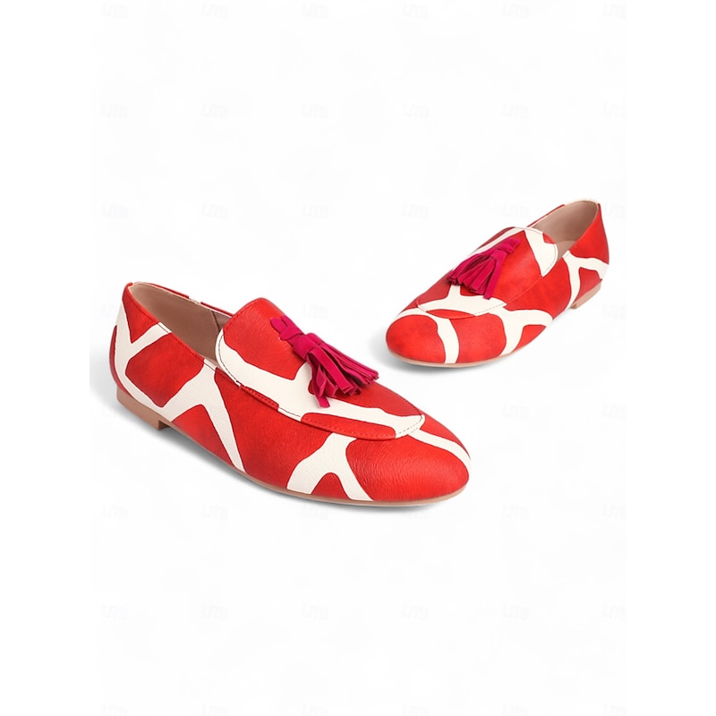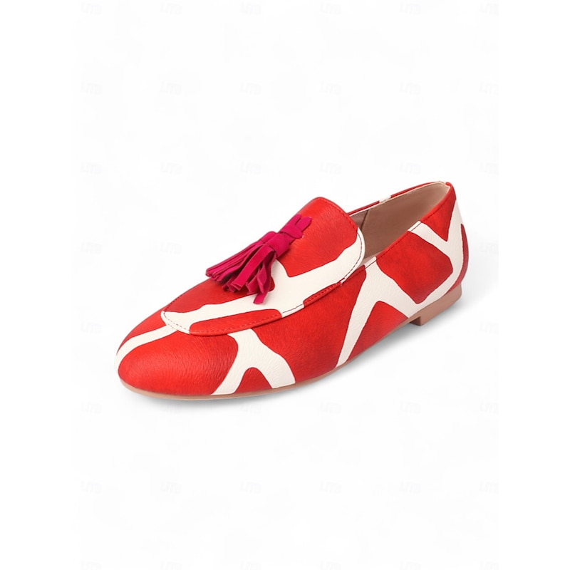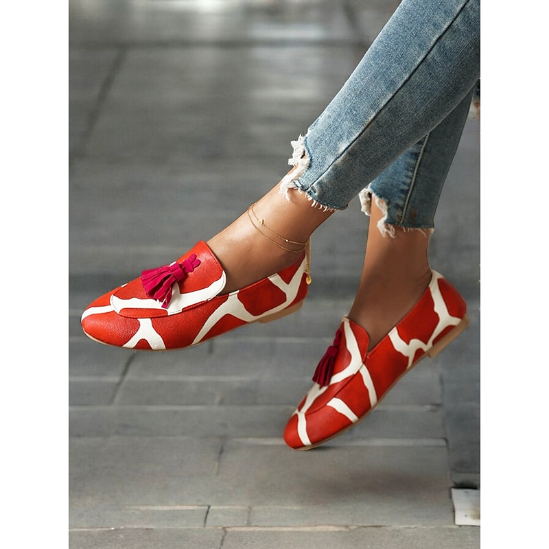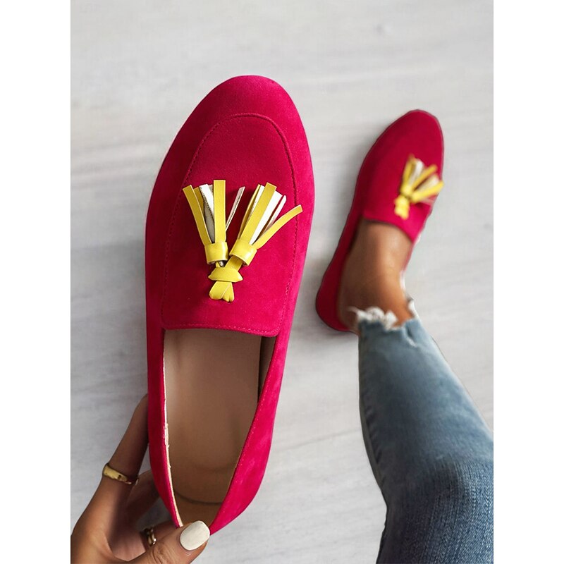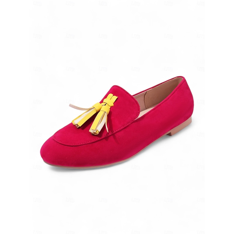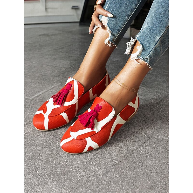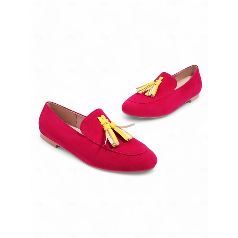 Highlights [Fabric] : Crafted from Tissage Volant, these Women's Pink Leopard Print Loafers offer a plush and luxurious feel. The material choice ensures both comfort and durability for daily wear. [Silhouette] : These loafers feature a slip-on design with a sleek, flat heel, making them convenient for easy on-and-off wear. Their minimalist style is perfect for a casual yet trendy appearance. [Design Highlights] : Stand out with the bold pink leopard print pattern, complemented by vibrant yellow tassels that add a playful touch. The round toe shape provides a comfortable fit, ideal for all-day wear. [Occasions] : These loafers are perfect for daily use, whether you're heading out for a casual outing, running errands, or meeting friends. Easily pair them with jeans or a casual dress for a chic and relaxed look. [Size Range] : Available in a variety of sizes, from US5.5 / EU35 to US10.5 / EU42, these loafers cater to a wide range of foot sizes, ensuring a perfect fit for everyone.