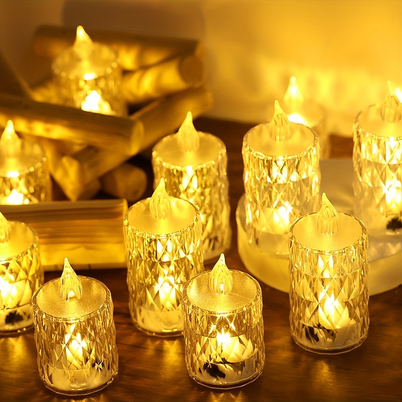 3pcs Crystal Flameless LED Candle Lights, Battery Powered Decorative Ambient Lights for Weddings, Parties, Christmas, and Home Decor 12