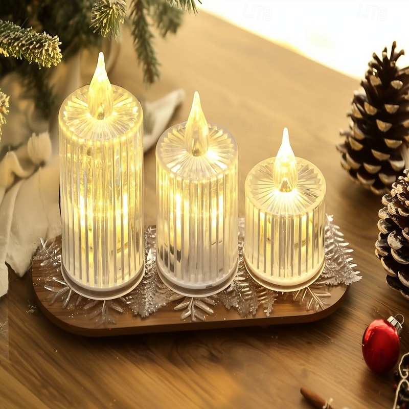 3pcs Crystal Flameless LED Candle Lights, Battery Powered Decorative Ambient Lights for Weddings, Parties, Christmas, and Home Decor 3