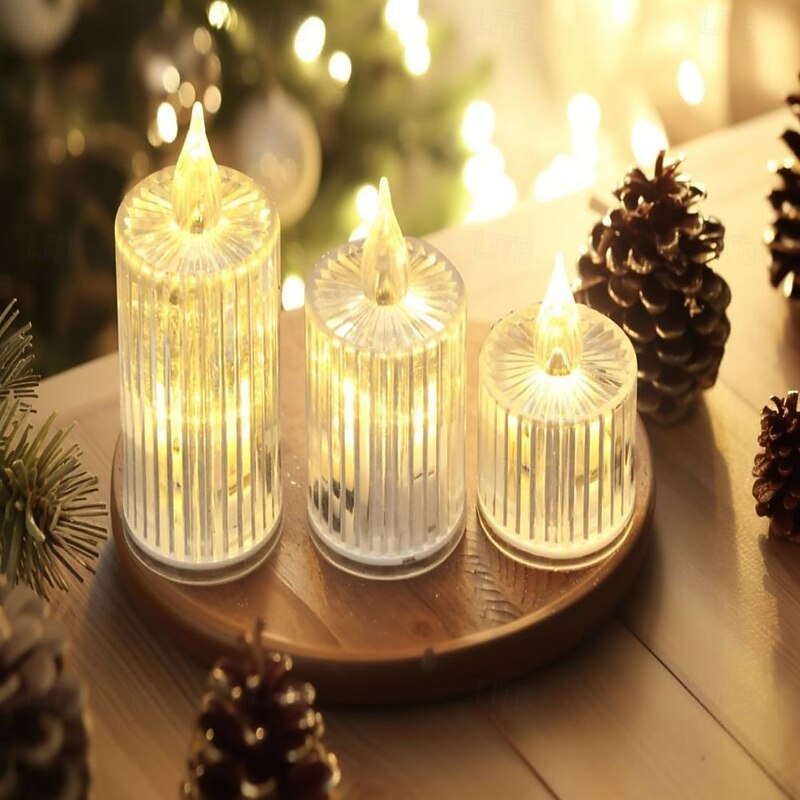 3pcs Crystal Flameless LED Candle Lights, Battery Powered Decorative Ambient Lights for Weddings, Parties, Christmas, and Home Decor 24