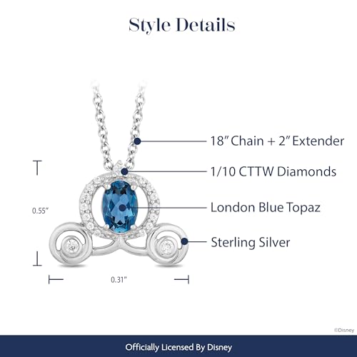 More information about Jewelili Disney Princess Cinderella Inspired Carriage Pendant Necklace for Women with 1/10 CTTW Diamond and London Blue Topaz in Sterling Silver Enchanted Disney Fine Jewelry