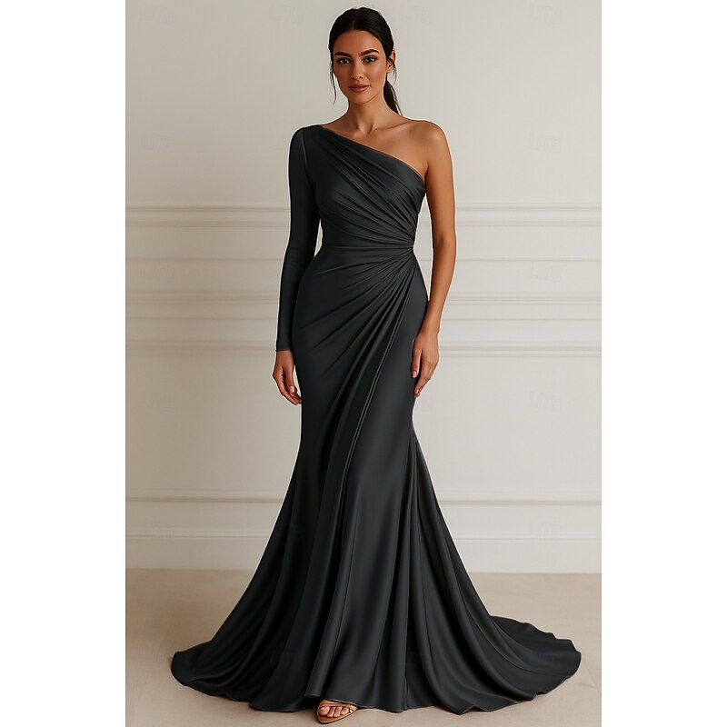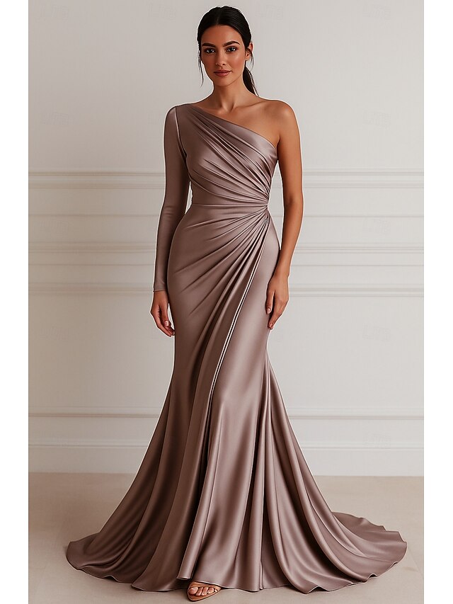 $144.99 - Mermaid / Trumpet Evening Gown Elegant Dress Formal Wedding Floor Length Long Sleeve One ShoulderDress Stretch Satin with Pleats 2025. Shop for cheap Mermaid Evening Dresses online? Buy at lightinthebox.com on sale today!