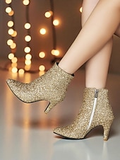 More information about Women's Glitter Gold Ankle Boots with Stiletto Heels - Sparkly Zip-Up Party Booties for Nightlife, Clubbing and Cocktail Events