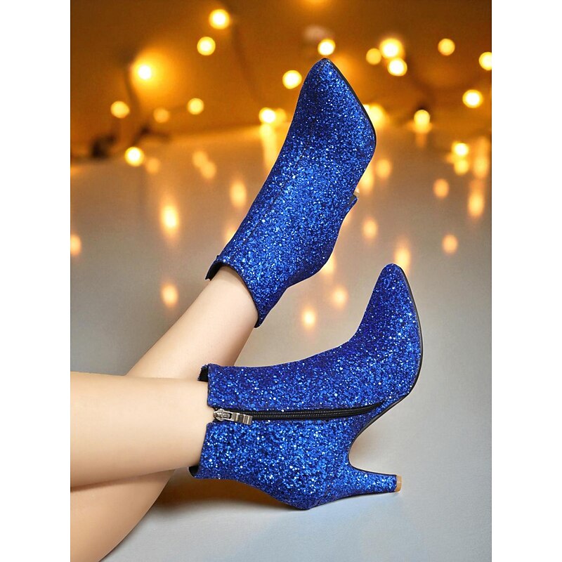 Women's Glitter Gold Ankle Boots with Stiletto Heels - Sparkly Zip-Up Party Booties for Nightlife, Clubbing and Cocktail Events 19