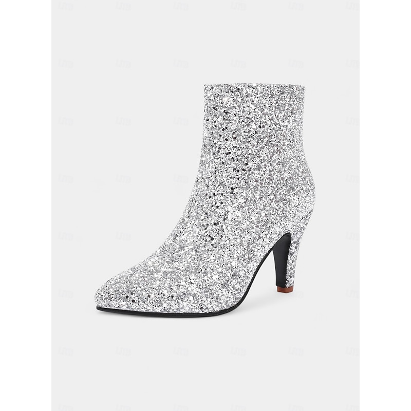 Women's Glitter Gold Ankle Boots with Stiletto Heels - Sparkly Zip-Up Party Booties for Nightlife, Clubbing and Cocktail Events 17