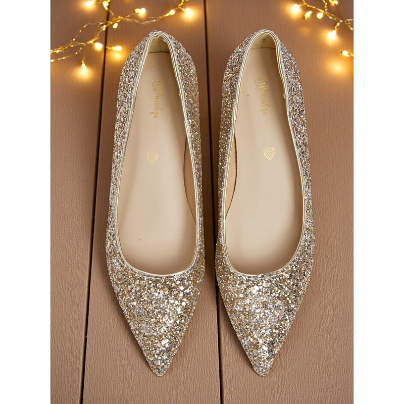 Highlights - Stunning sparkling glitter upper material - Luxurious synthetic leather lining - Elegant pointed toe shape - Durable rubber outsole