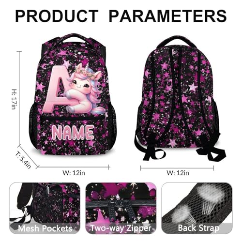 Kids Backpack, Custom Cute Unicorn Bookbag for Girls 6-8, Initial Gift for Birthday, 17 Inch Leisure Monogram Backpack for School Preschool Elementary Kindergarten 1