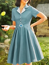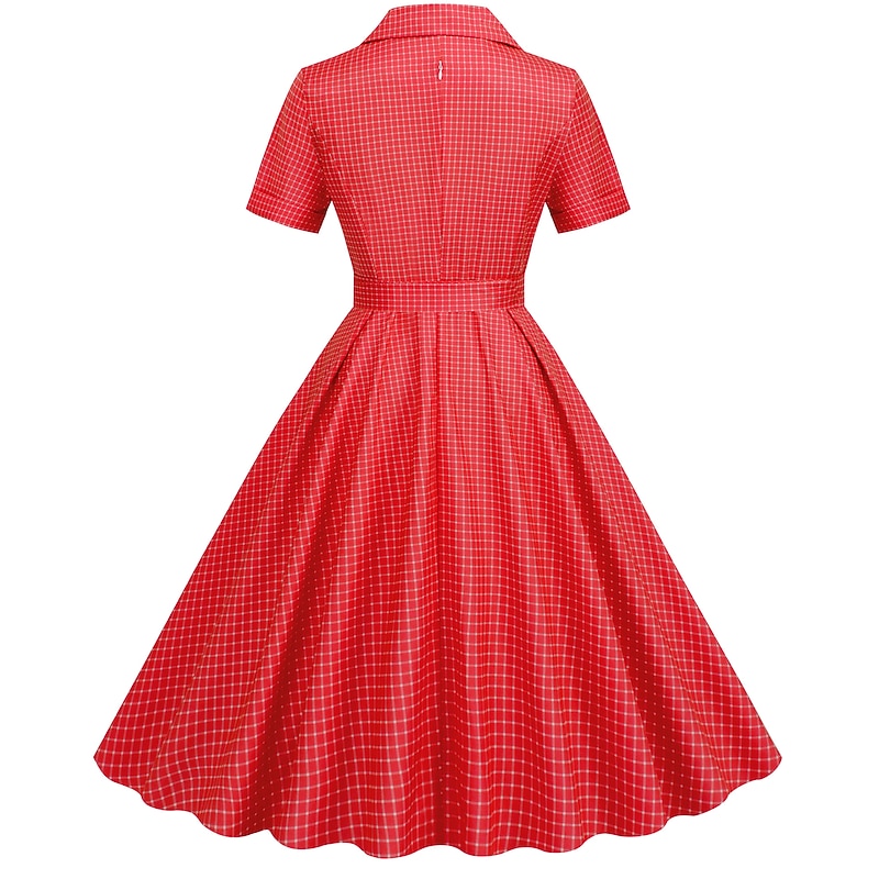 More information about Retro Vintage 1950s Rockabilly Knee Length Swing Dress Flare Dress Shirt Dress With Belt Plaid Fancy Dress Women's Carnival Masquerade Tea Party Casual Daily Retro Theme Party Adults' Dress Spring