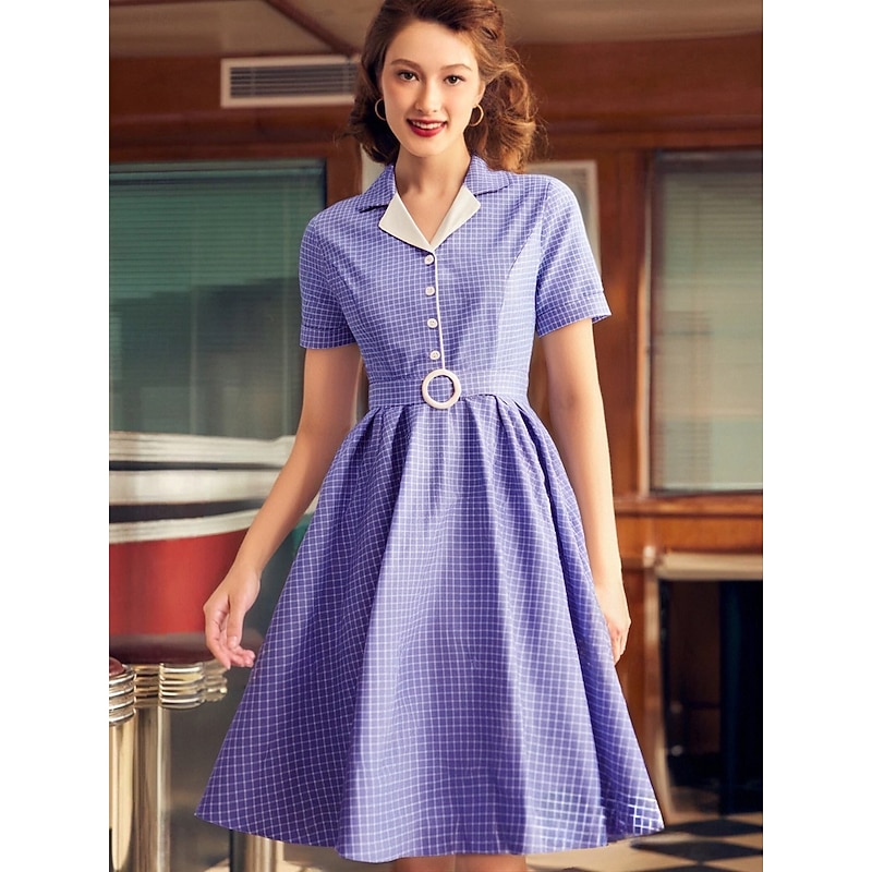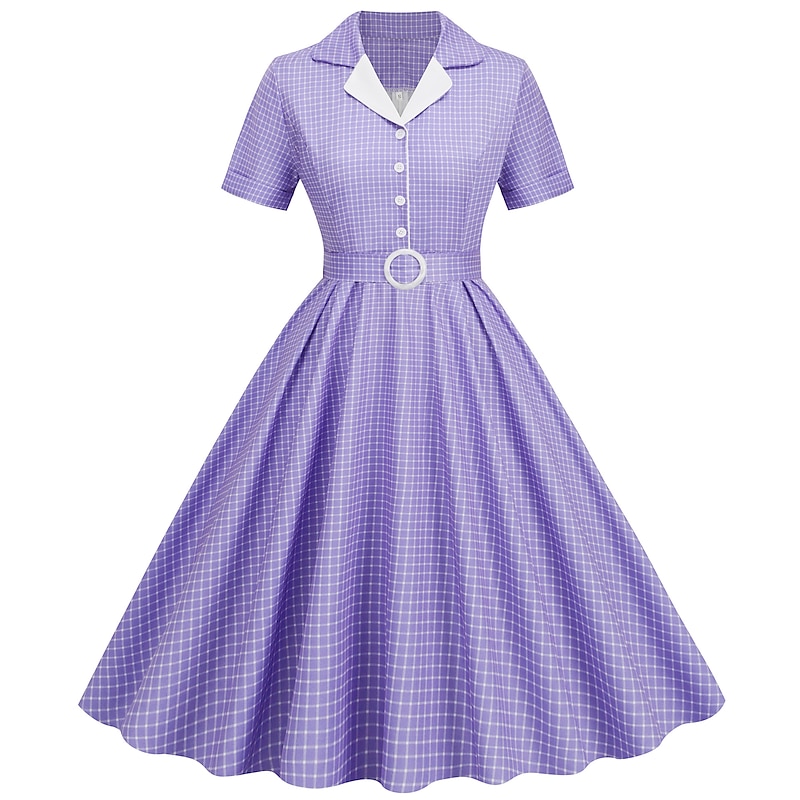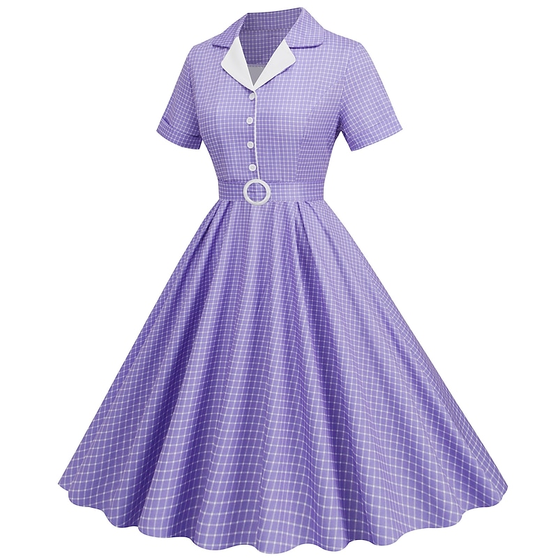 Retro Vintage 1950s Rockabilly Knee Length Swing Dress Flare Dress Shirt Dress With Belt Plaid Fancy Dress Women's Carnival Masquerade Tea Party Casual Daily Retro Theme Party Adults' Dress Spring 11