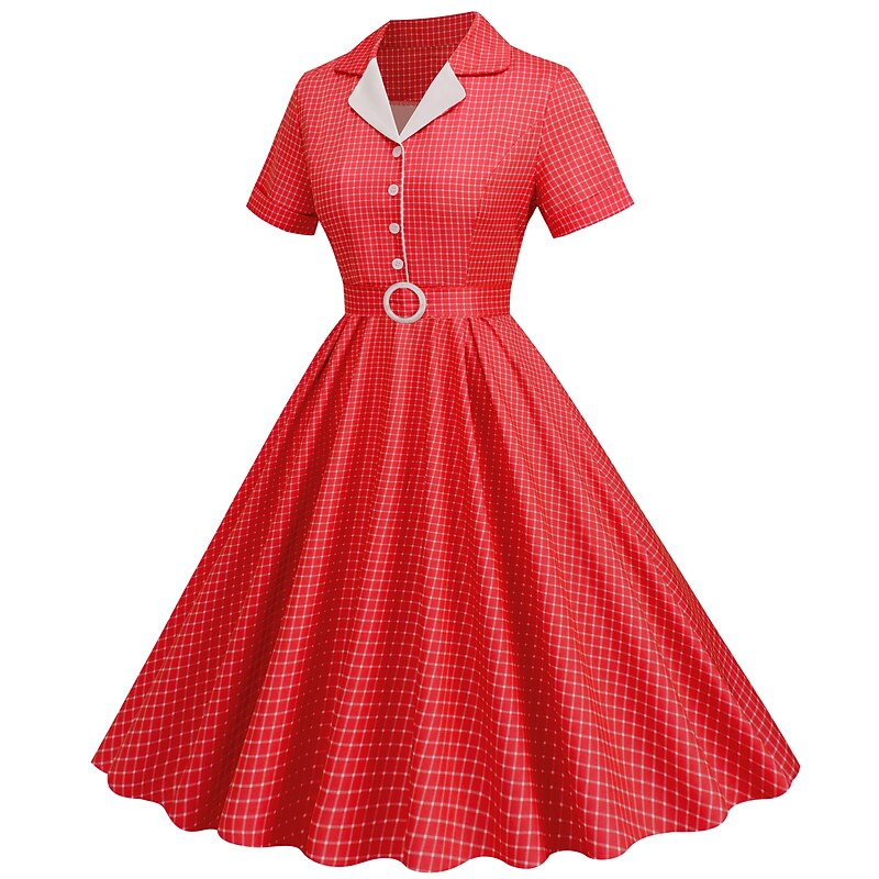 Retro Vintage 1950s Rockabilly Knee Length Swing Dress Flare Dress Shirt Dress With Belt Plaid Fancy Dress Women's Carnival Masquerade Tea Party Casual Daily Retro Theme Party Adults' Dress Spring 5