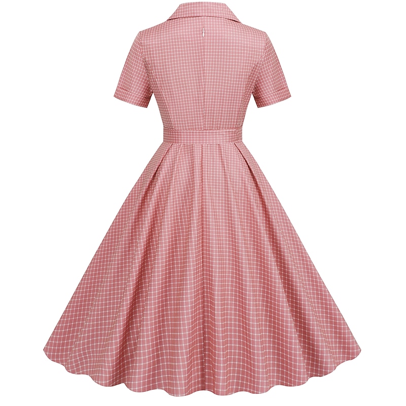 Retro Vintage 1950s Rockabilly Knee Length Swing Dress Flare Dress Shirt Dress With Belt Plaid Fancy Dress Women's Carnival Masquerade Tea Party Casual Daily Retro Theme Party Adults' Dress Spring 7