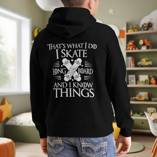 Kids Longboard Skater Funny Boys Girls Lightweight Kangaroo Pocket Fleece Hoodies 1