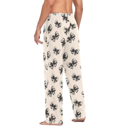 Mens Cotton Pajama Pants Sleep Lounge Pj Bottoms Sleepwear with Pockets Drawstring S Black Bowspattern 2