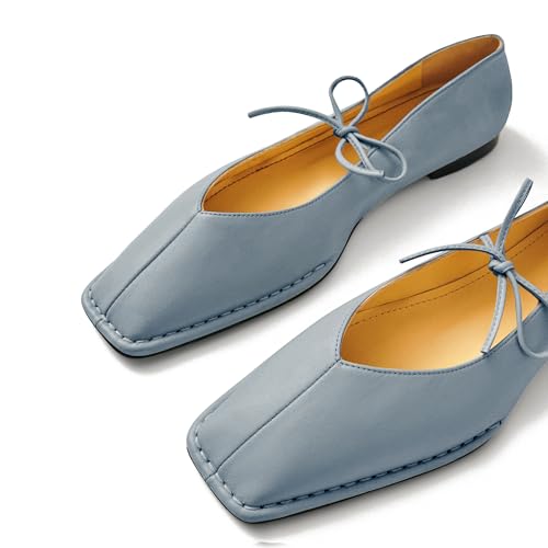 Square Toe Ballet Flats for Women Lace Up Blanket Stitch Sole Sewing Shoes Comfortable Casual Mary Jane Ballerina Flats 6