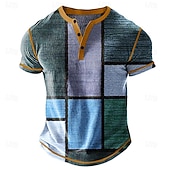 More information about Men's Graphic Plaid Henley Shirt Waffle T Shirt Short Sleeve Daily Retro Vintage Classic Sports Outdoor Casual Holiday Spring & Summer All Seasons Blue Yellow Green Khaki Henley Henley T-Shirt
