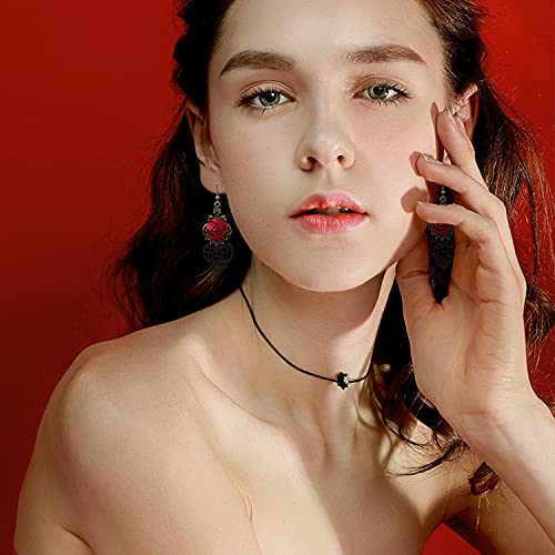 More information about Unique Personalized Punk Handmade Lightweight Vintage Red Rose Flower Dangle Drop Earrings for Women Statement Jewelry Gifts Retro Fabric Flower Hook Earrings