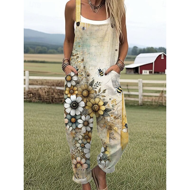 HOT ! Women's Dungarees Active Floral Sleeveless Straight with Pocket Vacation Street Loose Fit Yellow Blue Purple Summer